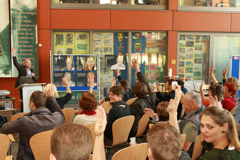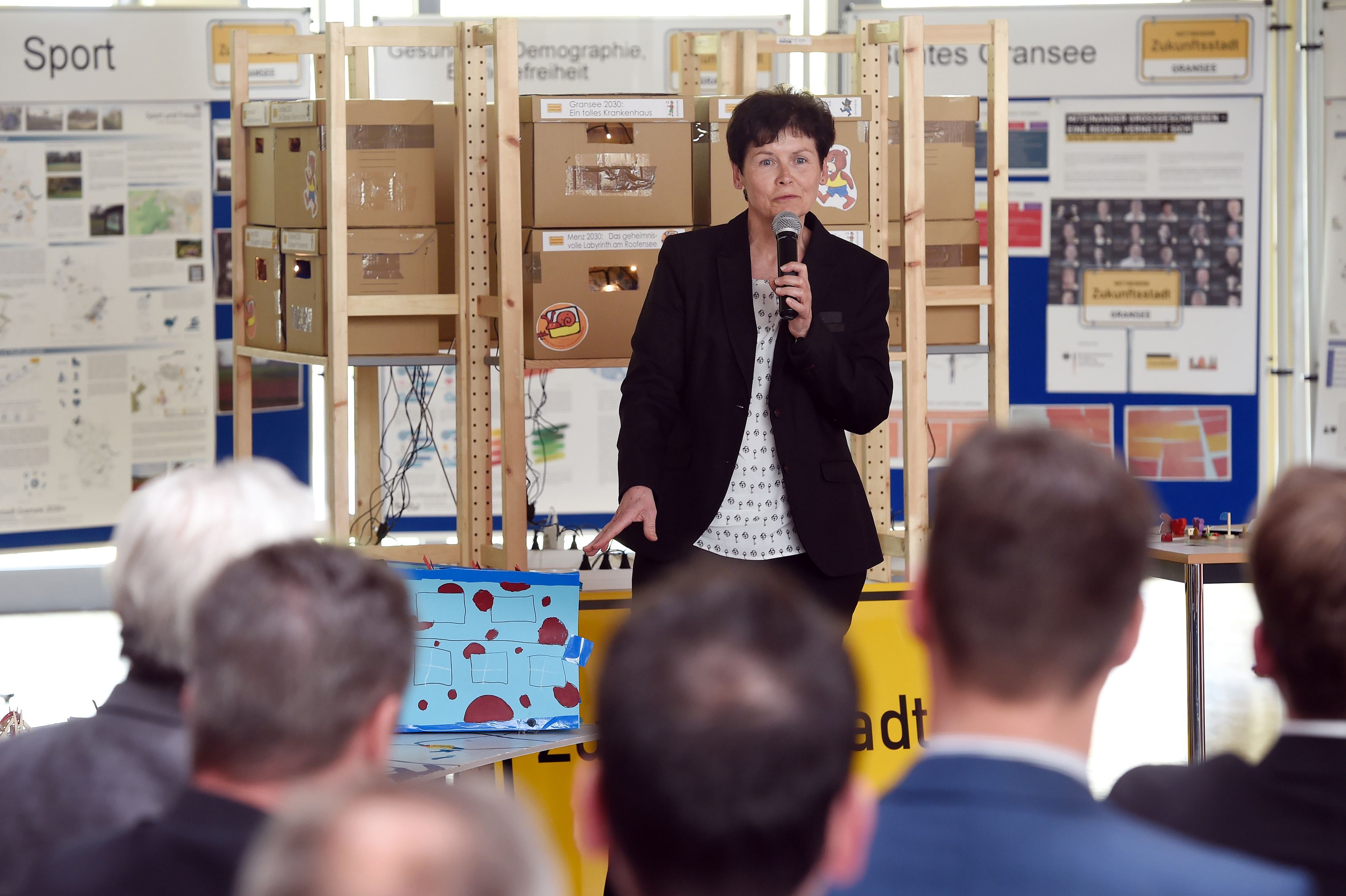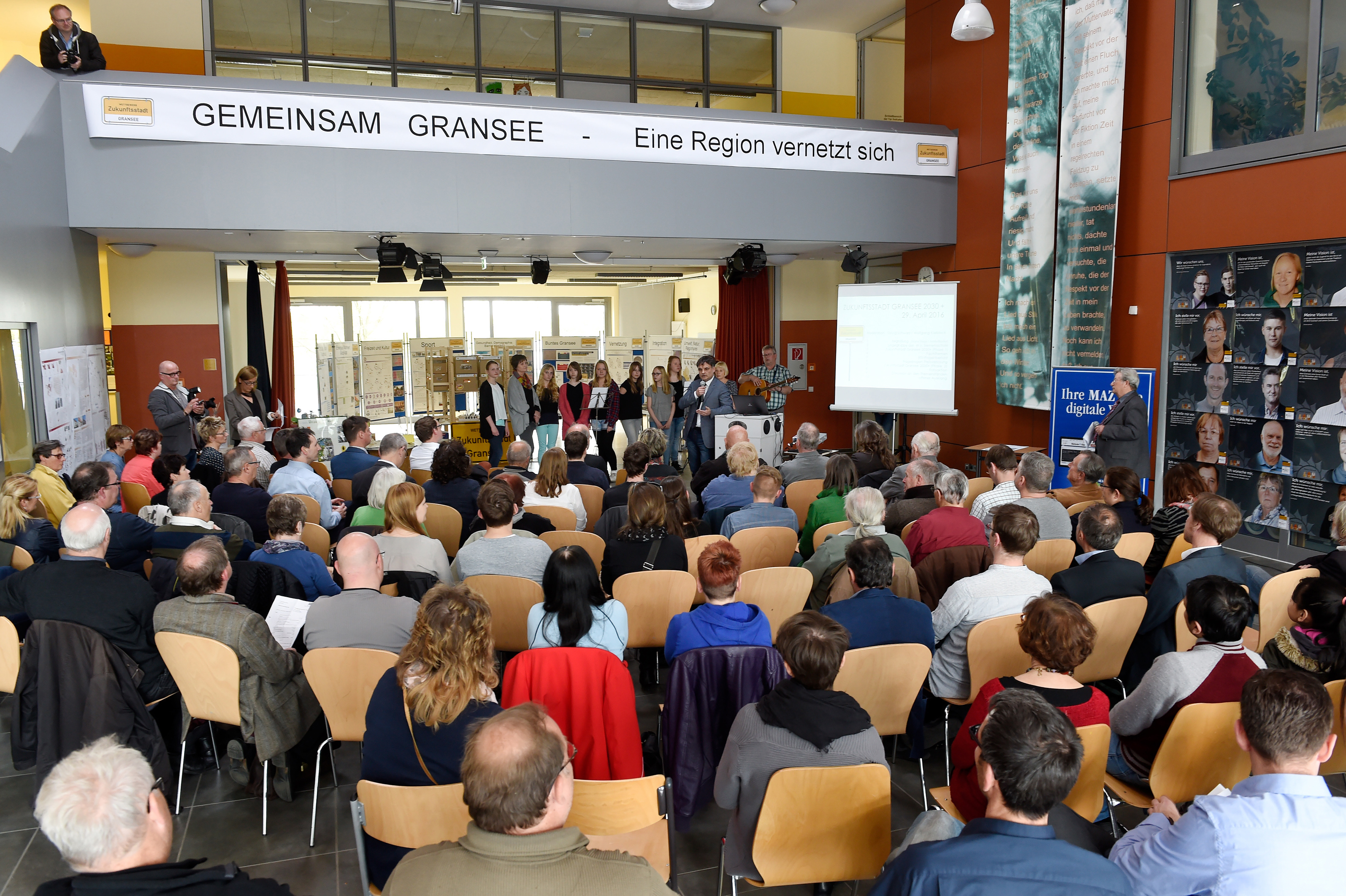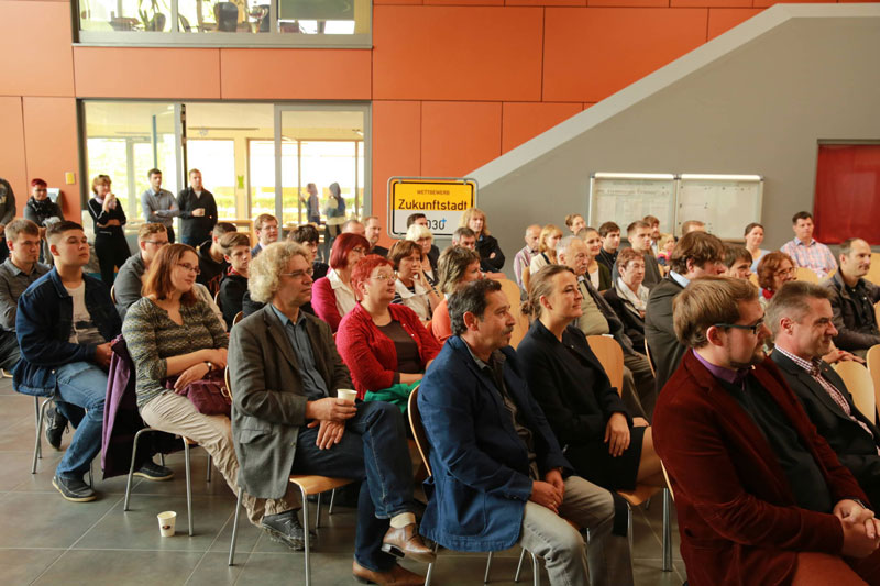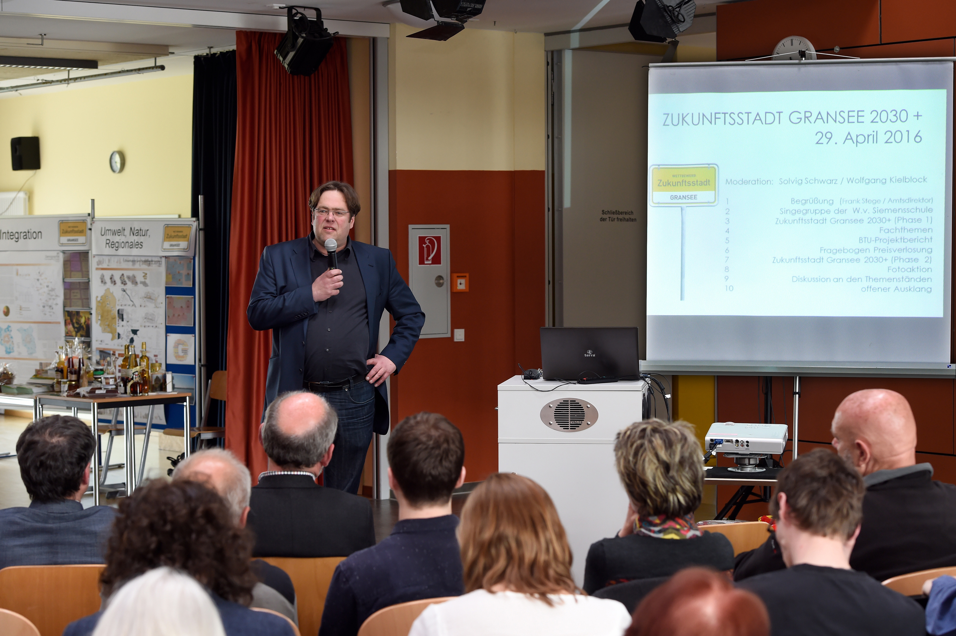 Welche Chancen für die Stadt Gransee, die Amtsgemeinden und den Einzelnen mit der Teilnahme am Wettbewerb „Zukunftsstadt 2030+“ verbunden sind, war die Ausgangsfrage der ersten Bürgerwerkstatt am 12. September 2015. Etwa 50 Interessierte hörten in der Aula des Strittmatter-Gymnasiums der Einführung des stellvertretenden Amtsleiters Manfred Richter zu. Er erläuterte Ziele und Inhalte des Wettbewerbs und stellte den zeitlichen Ablauf vor. Anschließend sorgte Britta Oertel, Forschungsleiterin am Berliner Institut für Zukunftsstudien, mit ihrem Impulsreferat für „Aha-Effekte“ und weckte so nicht nur bei den technisch-affinen Zuhörern das Interesse mitzuwirken.