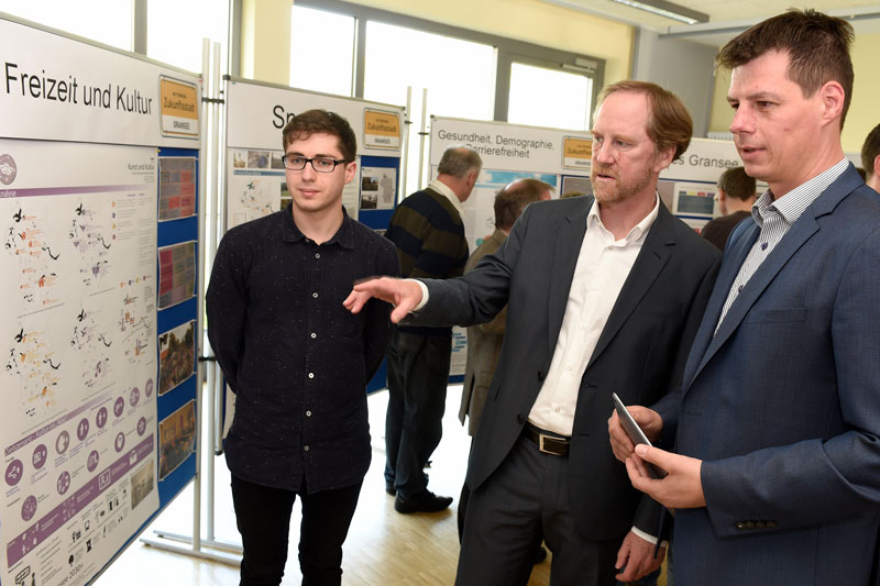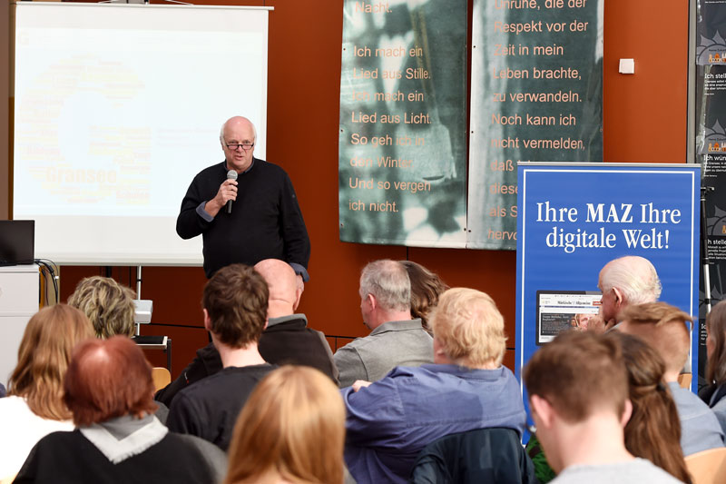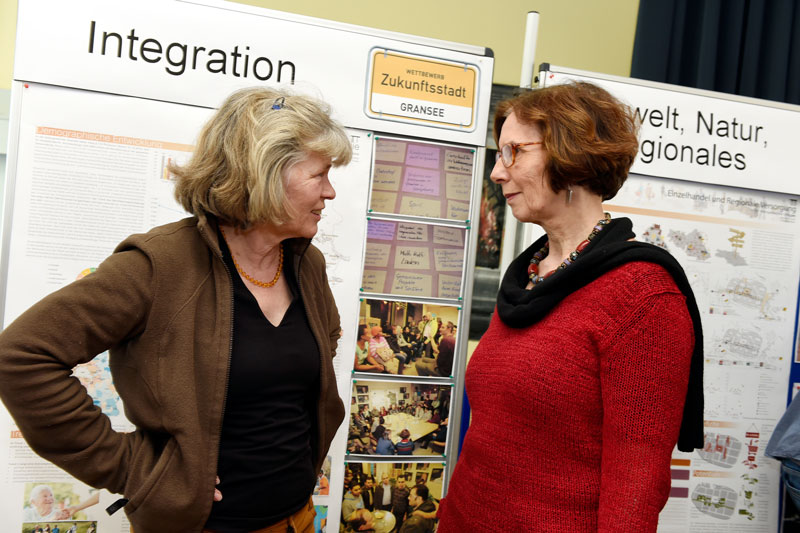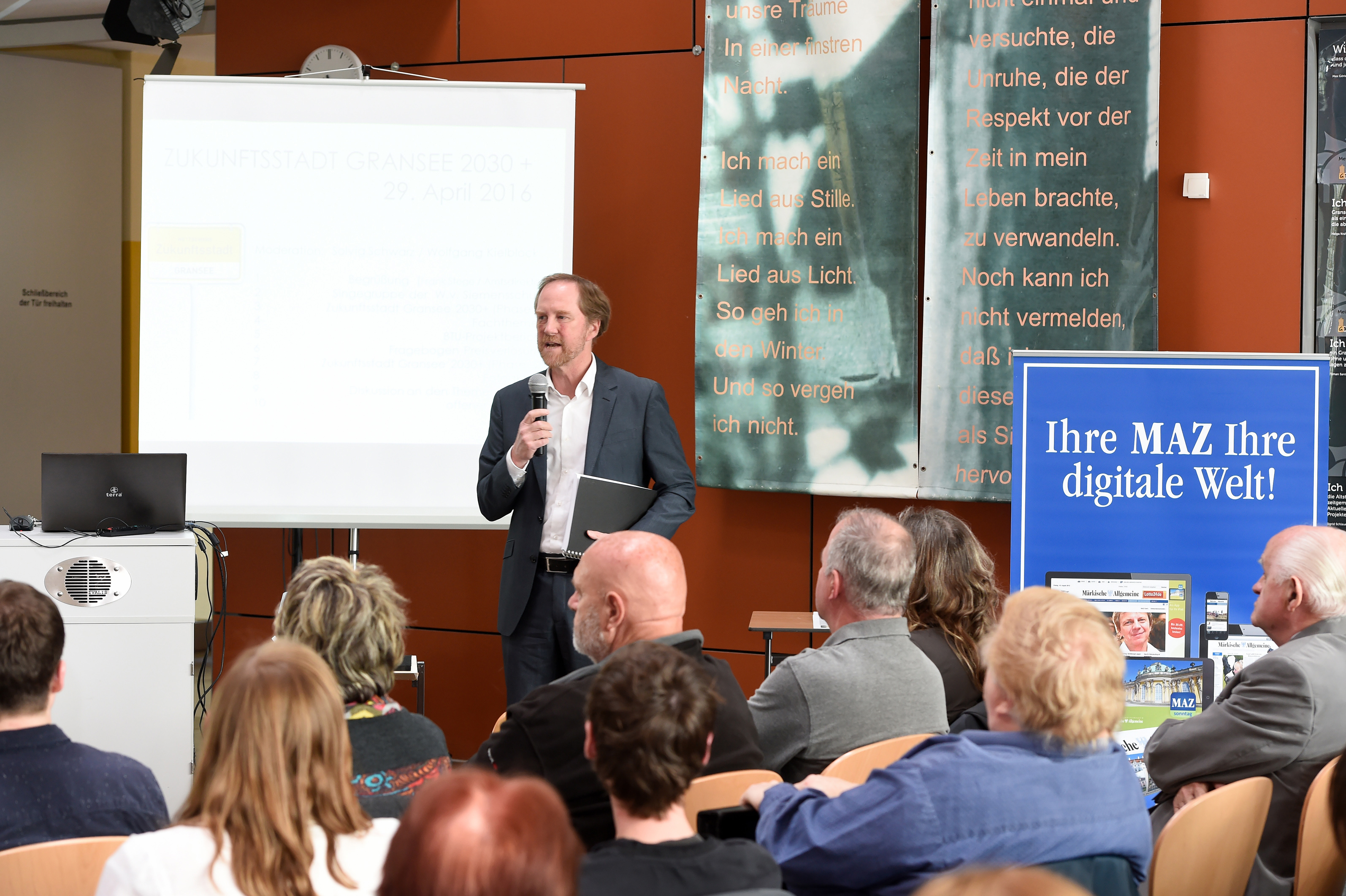 Der Präsentation der Arbeitsergebnisse der ersten Wettbewerbshase diente schließlich die zweite Bürgerwerkstatt, die am 29. April 2016 am gleichen Ort stattfand. Für das gewachsene Interesse sprachen die gut 80 Anwesenden, die sich in einer Präsentation, aufgelockert durch kleine Gesprächssituationen, wesentliche Aspekte der Wettbewerbsprozesse nahebringen ließen. Vorgestellt wurde auch die zentrale Idee für den Granseer Beitrag in der nun folgenden zweiten Phase des Wettbewerbs. Im Anschluss hatten die Teilnehmer Gelegenheit, sich in einer kleinen Ausstellung zu einzelnen Themenkomplexen weiter über das Projekt „Zukunftsstadt Gransee 2030+“ zu informieren und dabei angeregte Gespräche miteinander anzuknüpfen. MAZ vom 30.04.2016