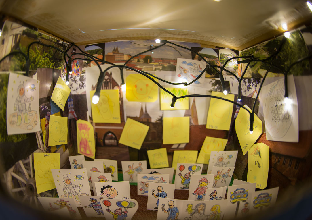 Und es gab die Aktion „Was ist los in unserer Stadt?“: An einer Litfaßsäule vor der Granseer Marienkirche konnten Kinder eigenhändig Plakate ankleben, auf welchen sie zuvor ihren Wünschen und Hoffnungen mit viel Hingabe künstlerisch Ausdruck verliehen hatten.